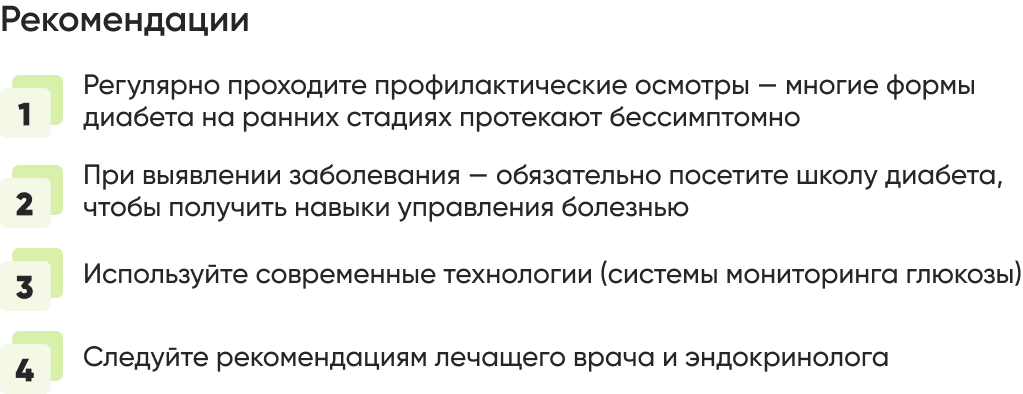 Главная задача — сформировать культуру здорового образа жизни. А также обеспечить доступность диспансеризации и профилактических осмотров. Регулярные медицинские обследования помогают на ранних стадиях выявить сахарный диабет, сердечно-сосудистые патологии, онкологические и другие заболевания. Ранняя диагностика позволяет начать лечение как можно раньше. Это повышает шансы на полное выздоровление.