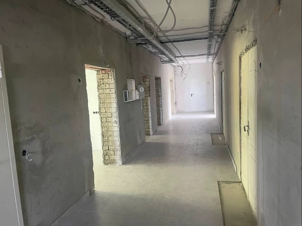 На сегодняшний день объект готов на 50%. Одним из ключевых этапов стало завершение укладки керамической плитки во всех кабинетах третьего этажа. В то же время в коридорах ведутся масштабные отделочные работы: специалисты тщательно подготавливают стены к последующему окрашиванию, обеспечивая ровность и долговечность поверхностей.